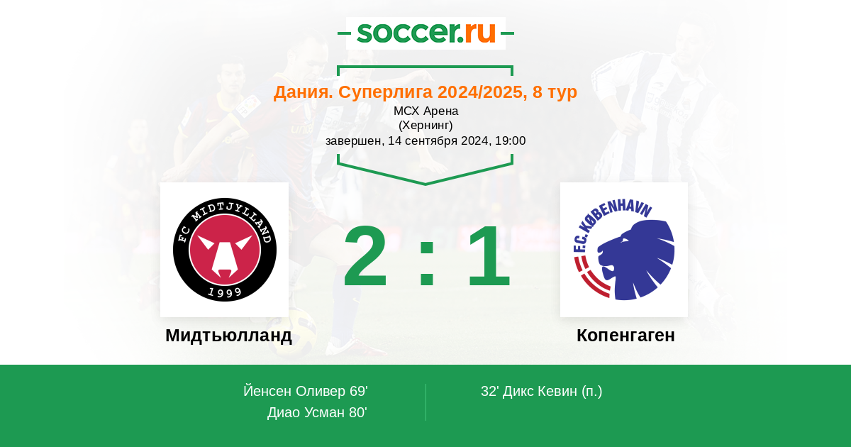 69' (1:1) Йенсен Оливер (24) (Диао Усман (4))