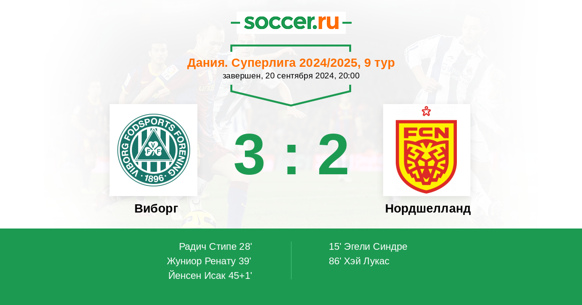 Протокол матча Виборг против Нордшелланд