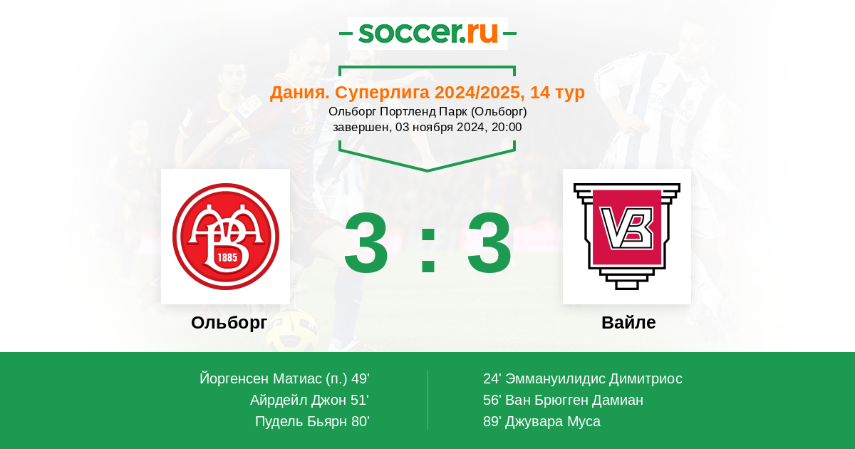 Протокол матча Ольборг против Вайле