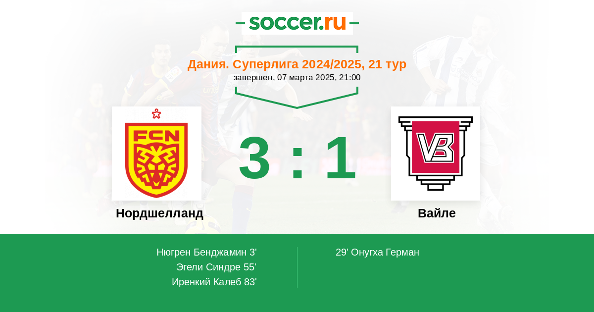 Протокол матча Нордшелланд против Вайле