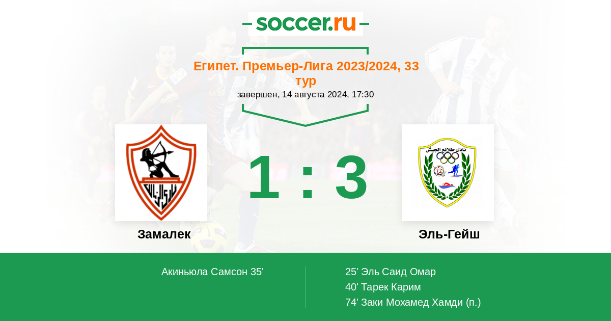 Протокол матча Замалек против Эль-Гейш