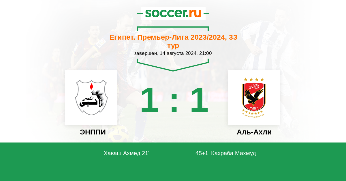 21' (1:0) Хаваш Ахмед (45) (Шериф Мохамед (11))