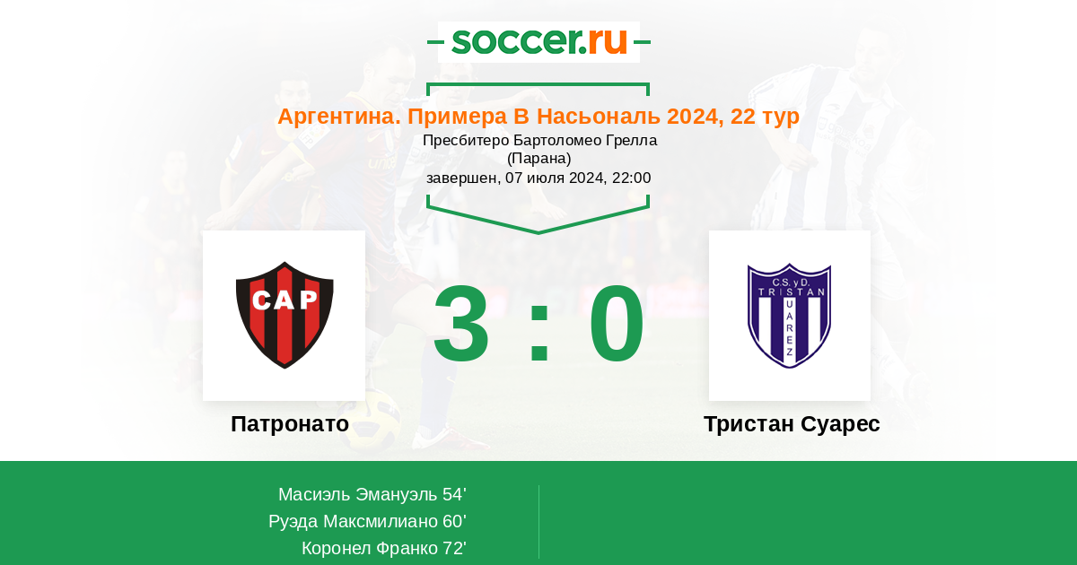 Протокол матча Патронато против Тристан Суарес