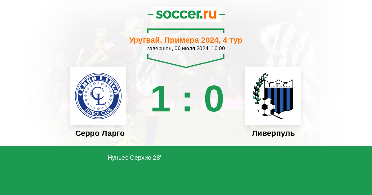 Протокол матча Серро Ларго против Ливерпуль