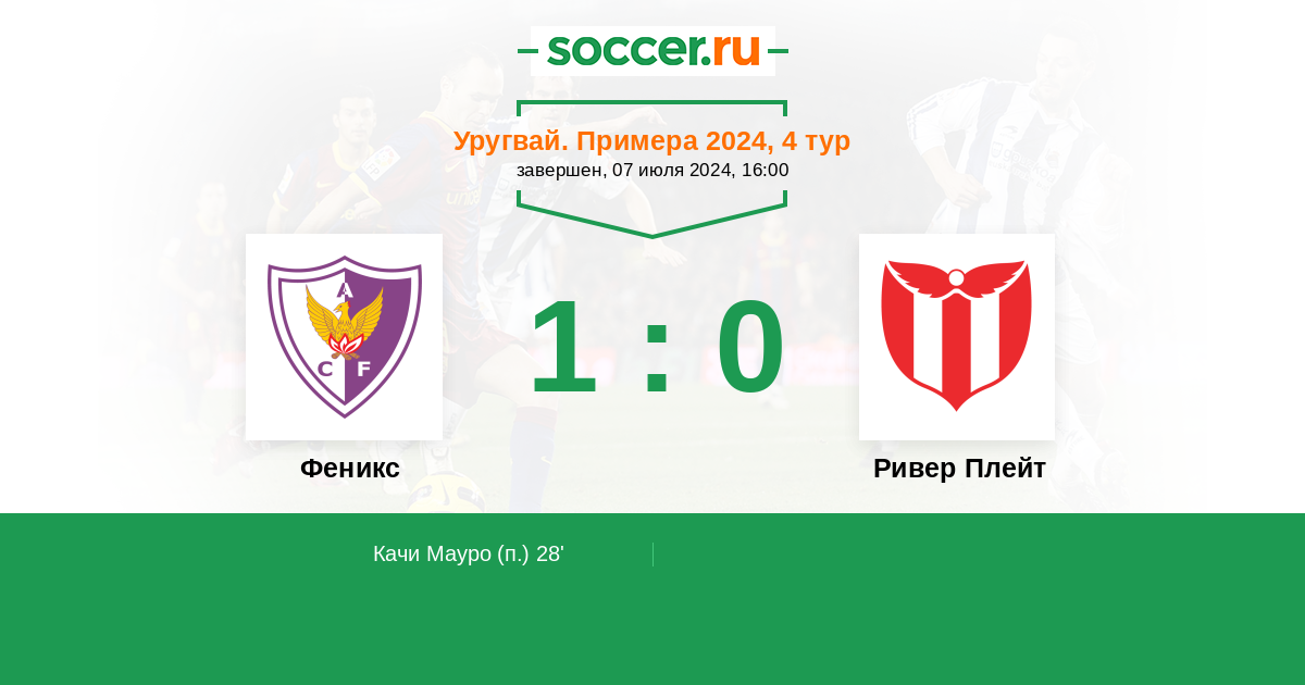 Протокол матча Феникс против Ривер Плейт