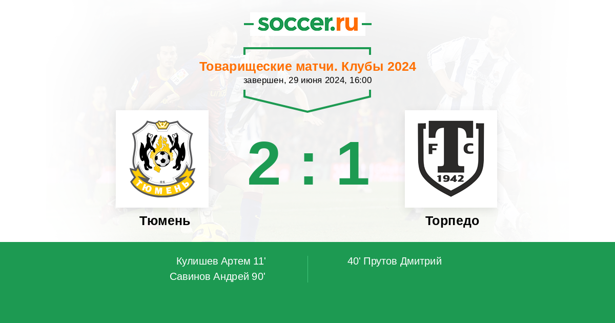 Протокол матча Тюмень против Торпедо