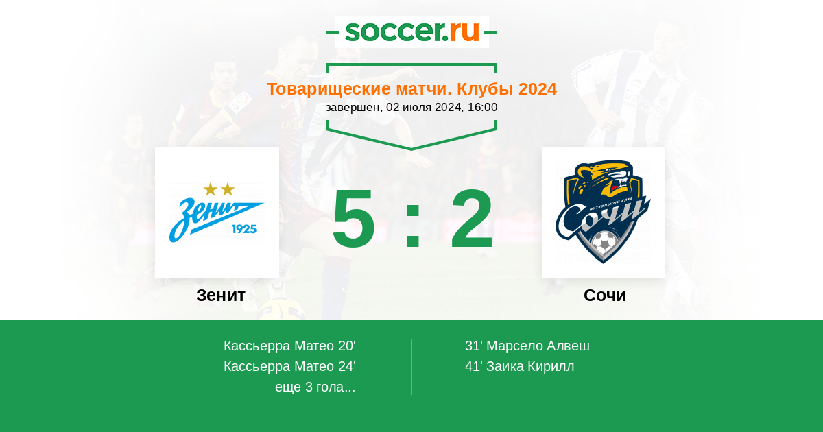 Протокол матча Зенит против Сочи