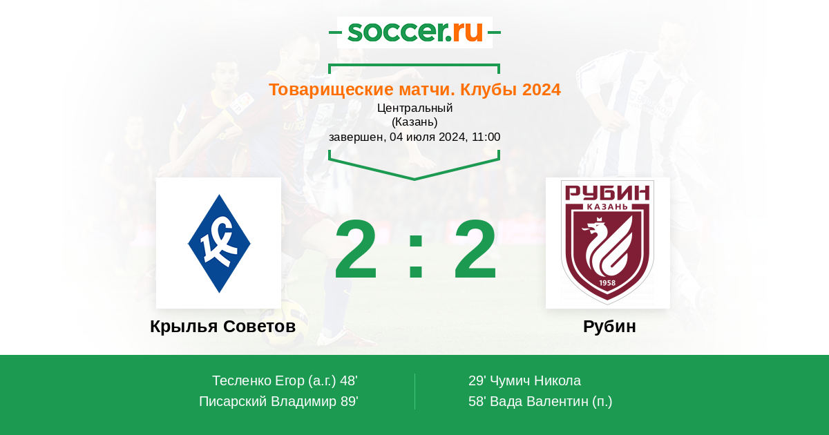 Протокол матча Крылья Советов против Рубин