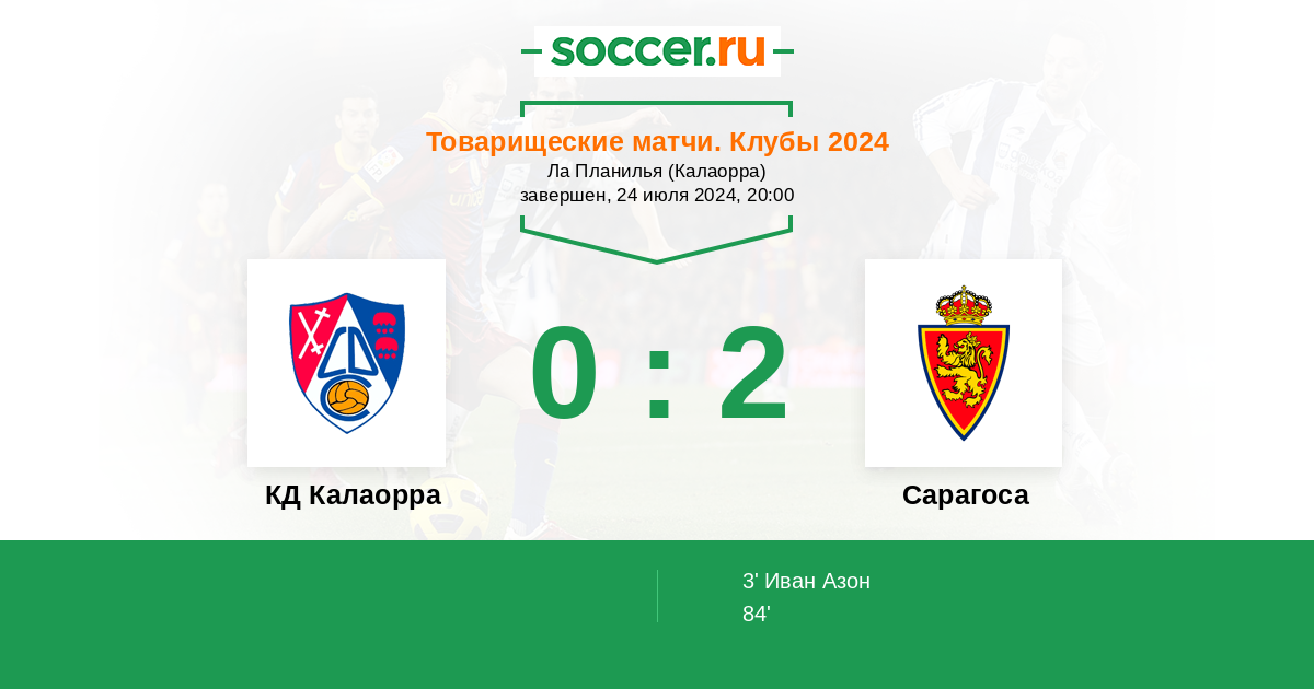 Протокол матча КД Калаорра против Сарагоса