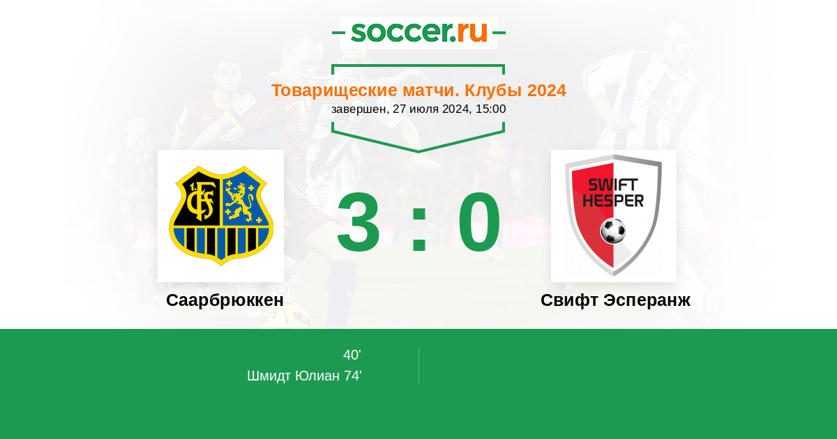 Протокол матча Саарбрюккен против Свифт Эсперанж