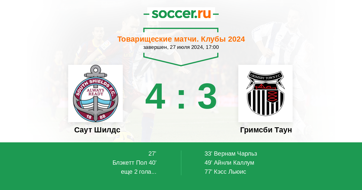 Протокол матча Саут Шилдс против Гримсби Таун