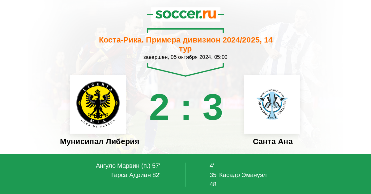 Протокол матча Либерия против Санта Ана