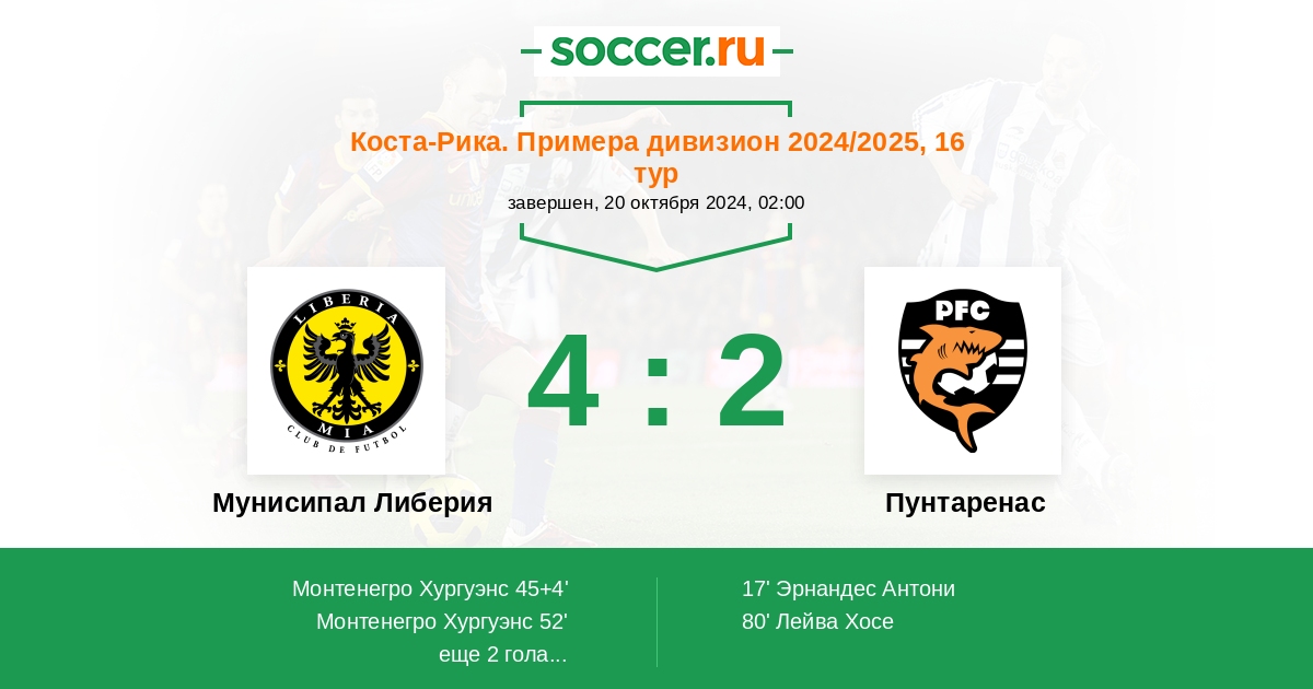 Протокол матча Либерия против Пунтаренас