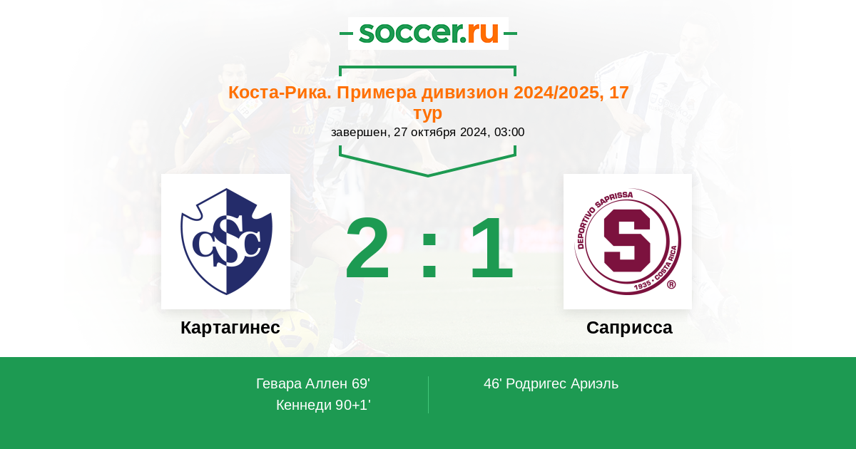 Протокол матча Картахинес против Саприсса