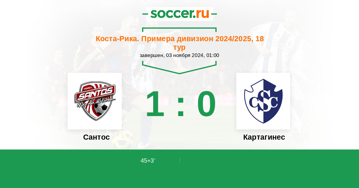 Протокол матча Сантос против Картахинес