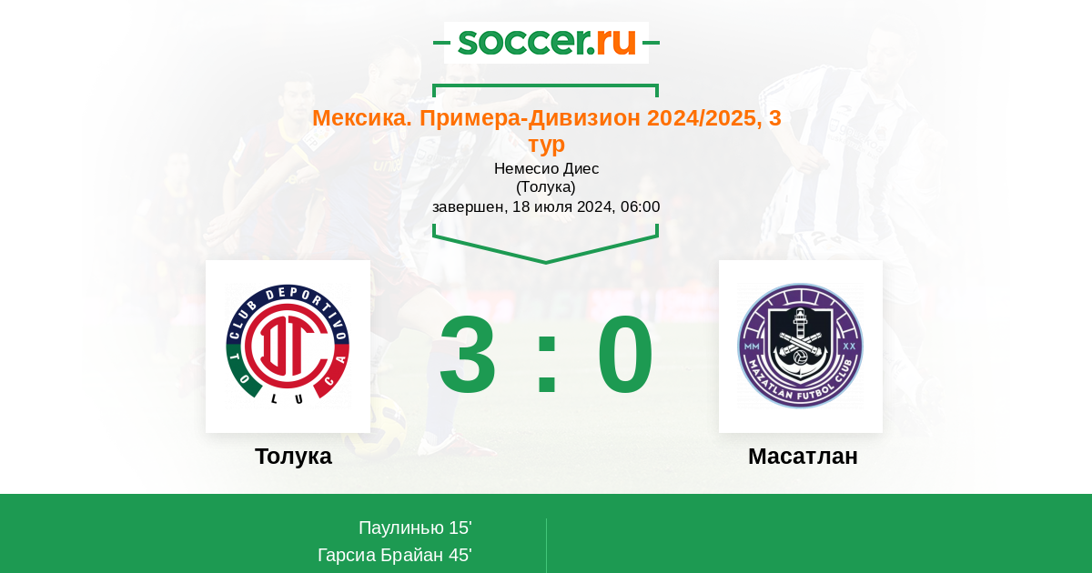 15' (1:0) Паулинью (26) (Ангуло Хесус (10))