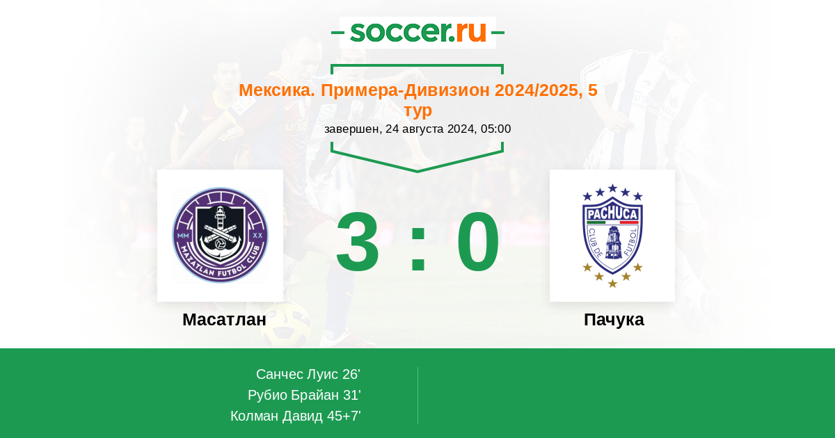 Протокол матча Масатлан против Пачука