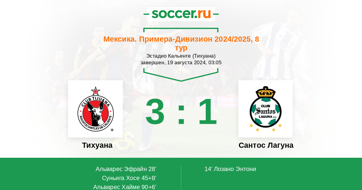 Протокол матча Тихуана против Сантос Лагуна