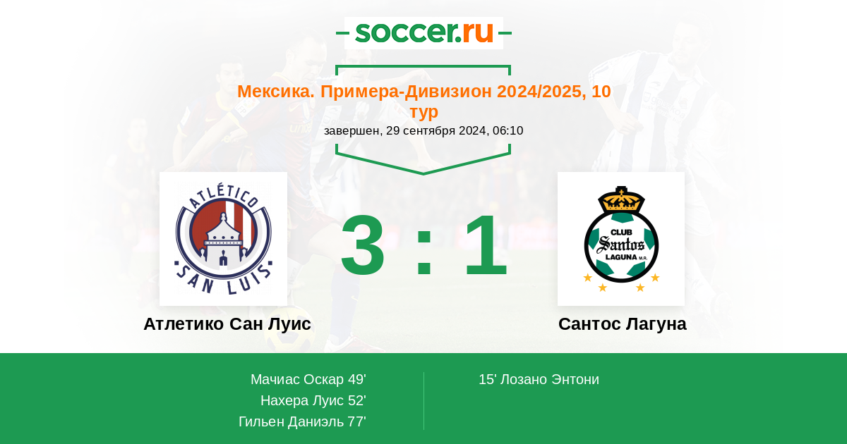 Протокол матча Атлетико Сан Луис против Сантос Лагуна