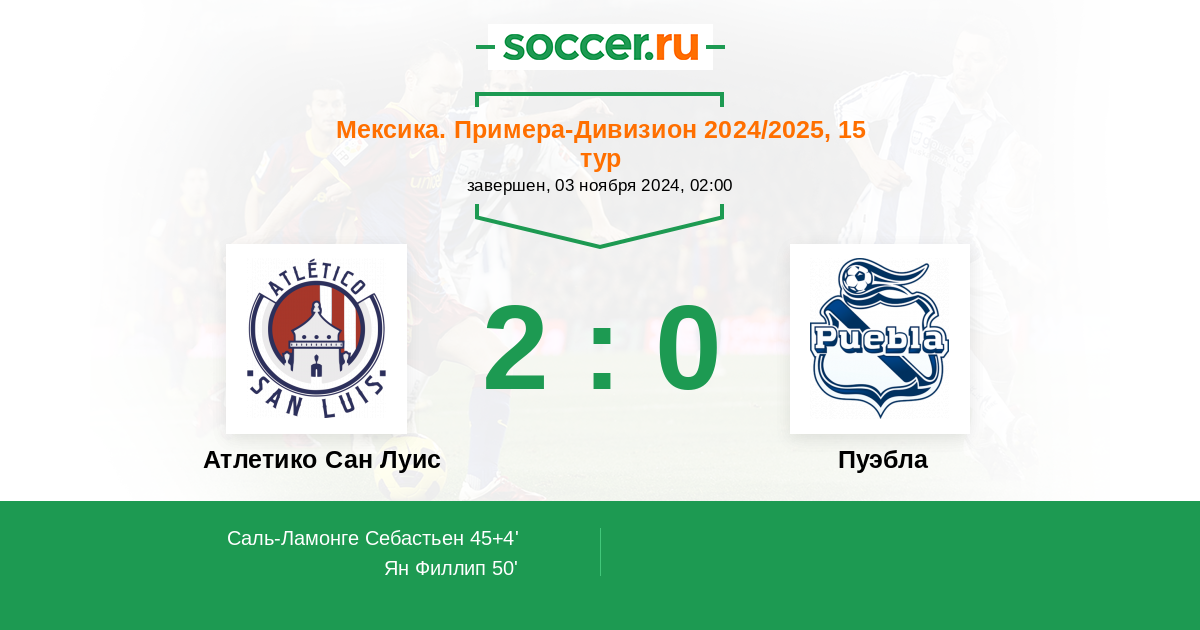 Протокол матча Атлетико Сан Луис против Пуэбла