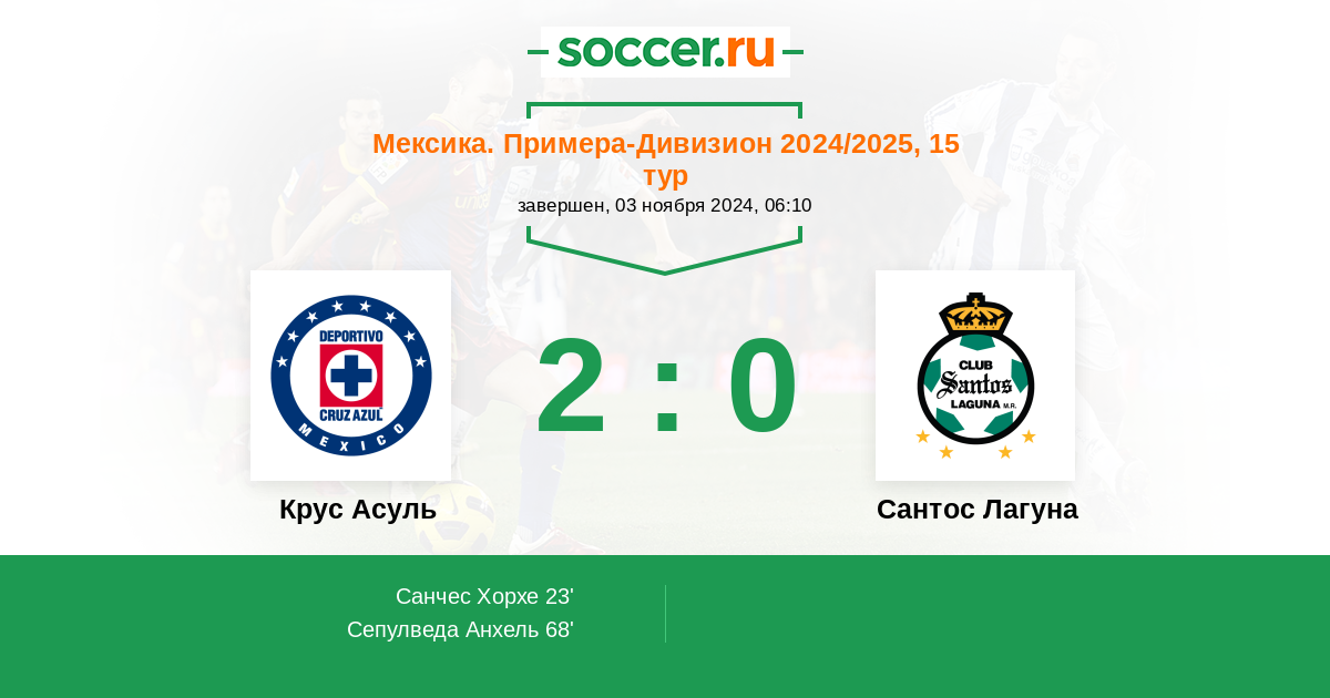 68' (2:0) Сепулведа Анхель (9) (Ромо Луис (27))