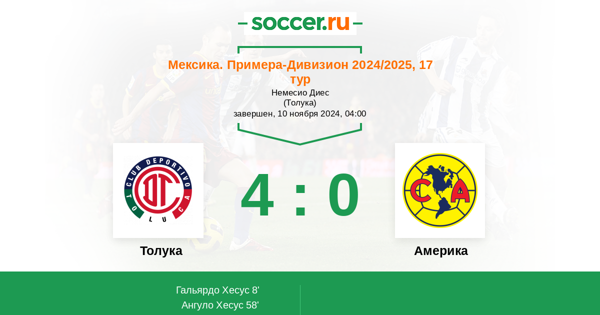 Протокол матча Толука против Америка
