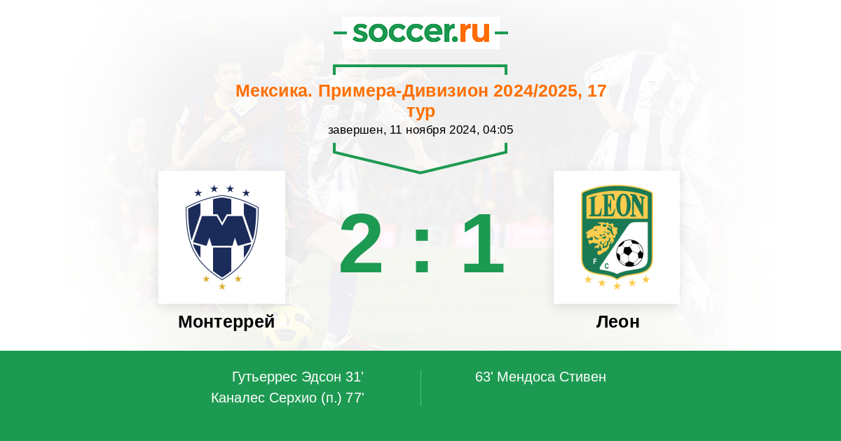 Протокол матча Монтеррей против Леон