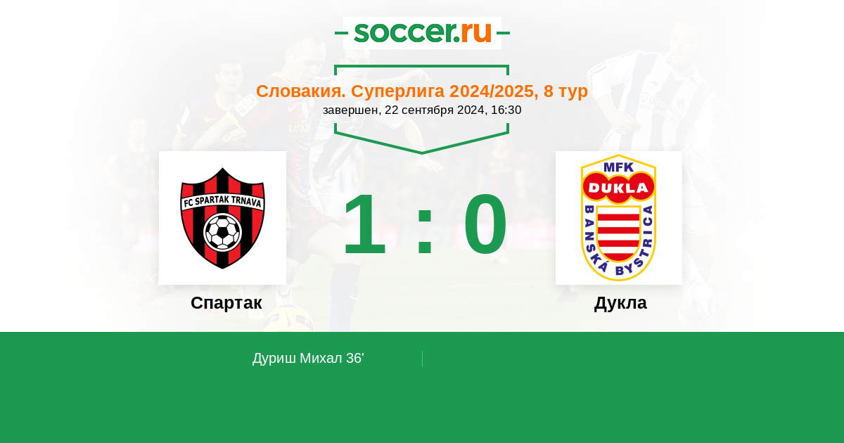 Протокол матча Спартак против Дукла