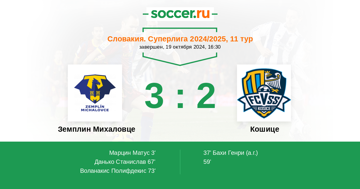 Протокол матча Земплин Михаловце против Кошице