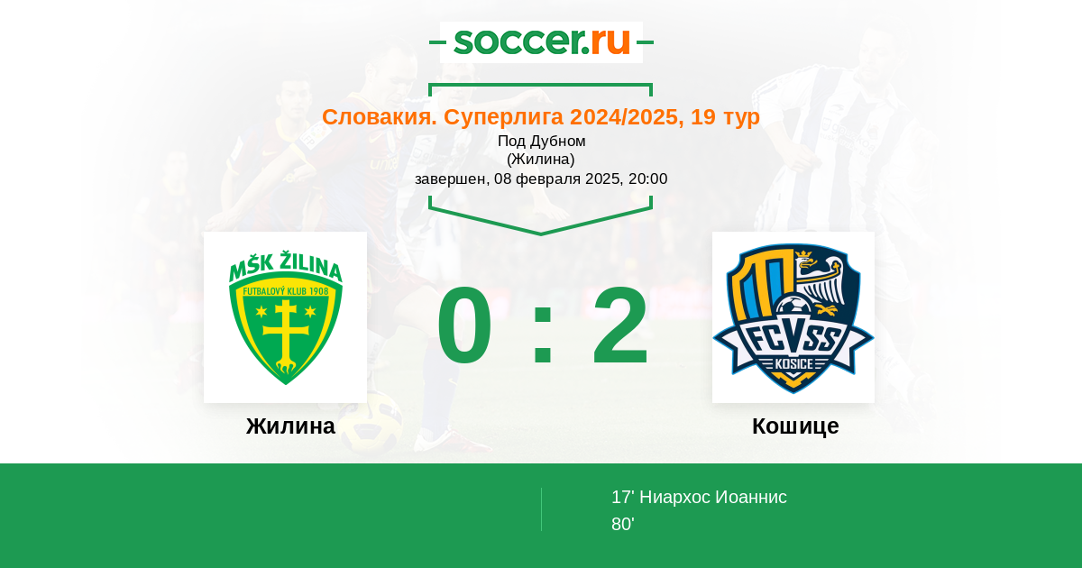 Протокол матча Жилина против Кошице