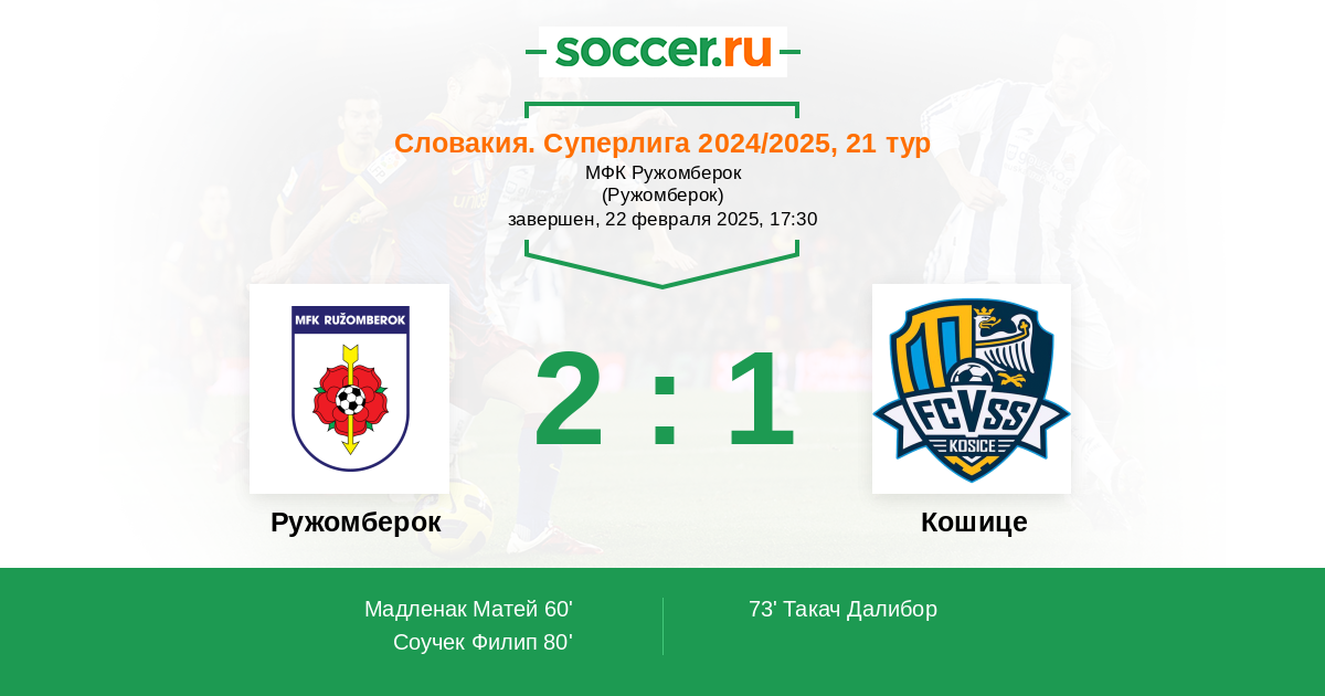Протокол матча Ружомберок против Кошице