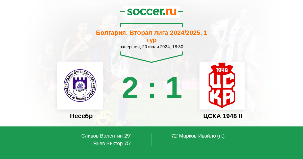 Протокол матча Несебр против ЦСКА 1948 II