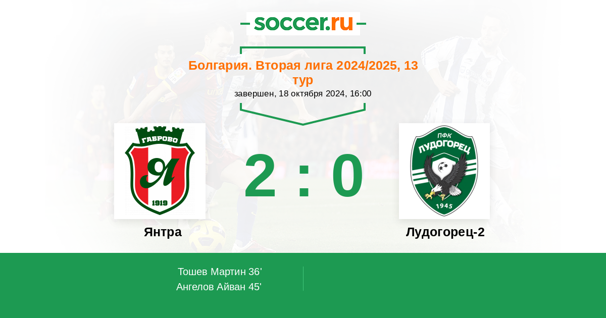Протокол матча Янтра против Лудогорец-2