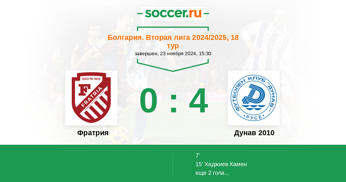 Протокол матча Фратрия против Дунав 2010