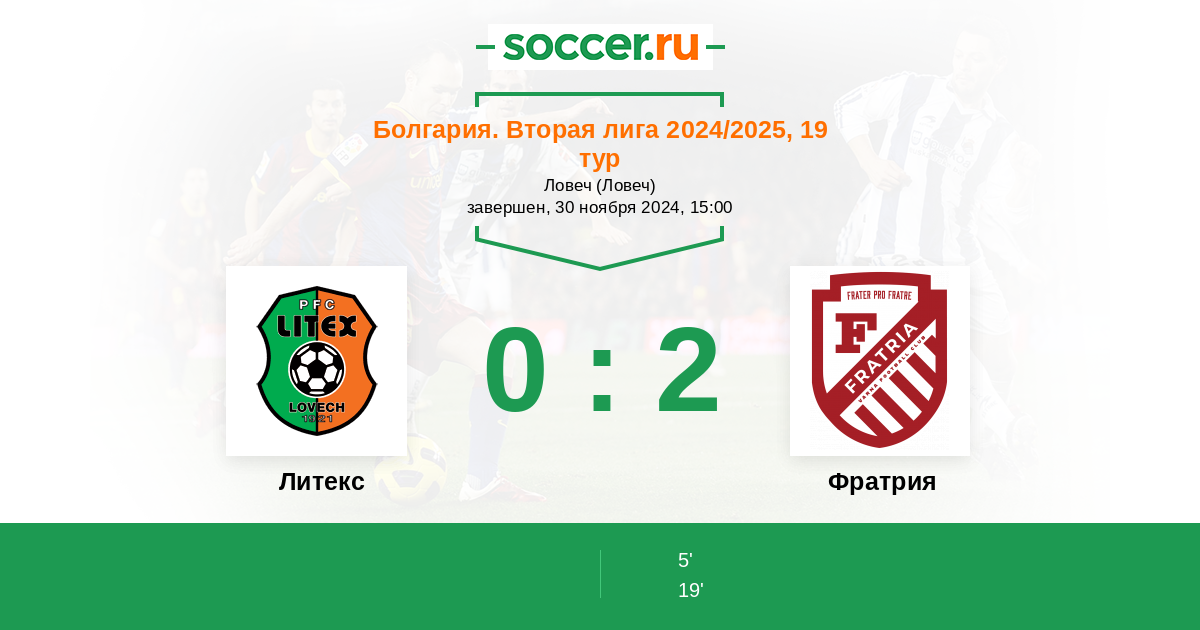 Протокол матча Литекс против Фратрия