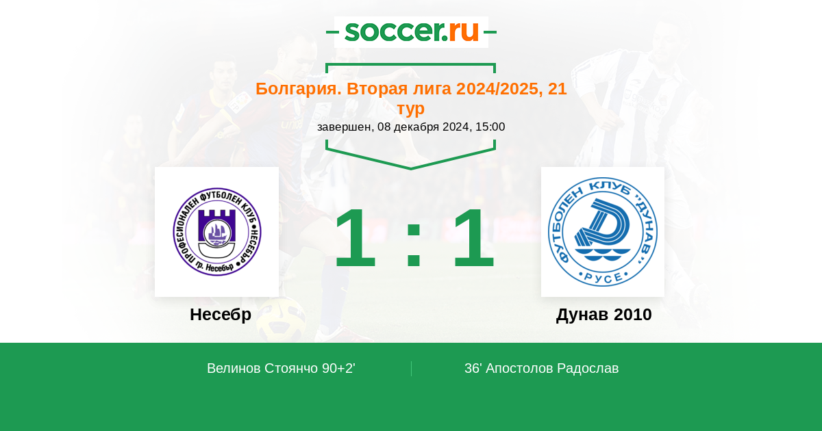 Протокол матча Несебр против Дунав 2010