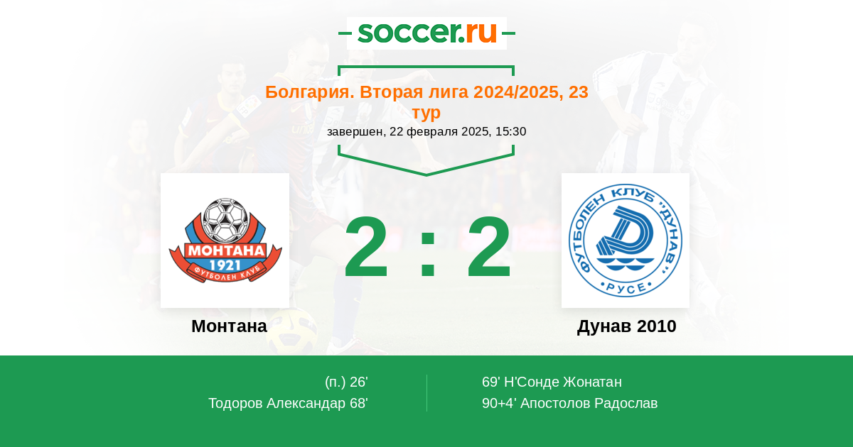 Протокол матча Монтана против Дунав 2010