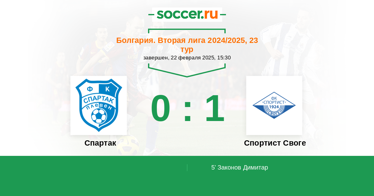 Протокол матча Спартак против Спортист Своге