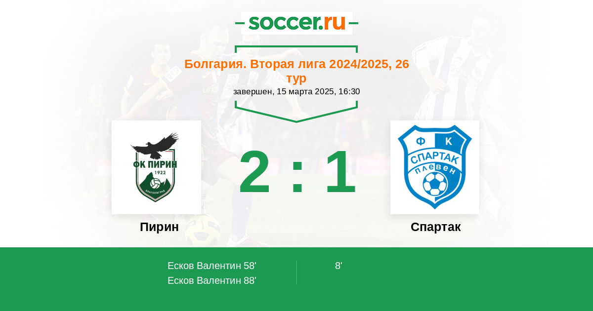 Протокол матча Пирин против Спартак