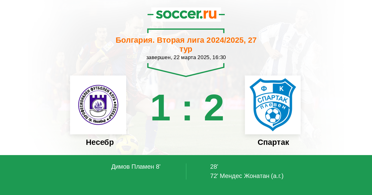 Протокол матча Несебр против Спартак