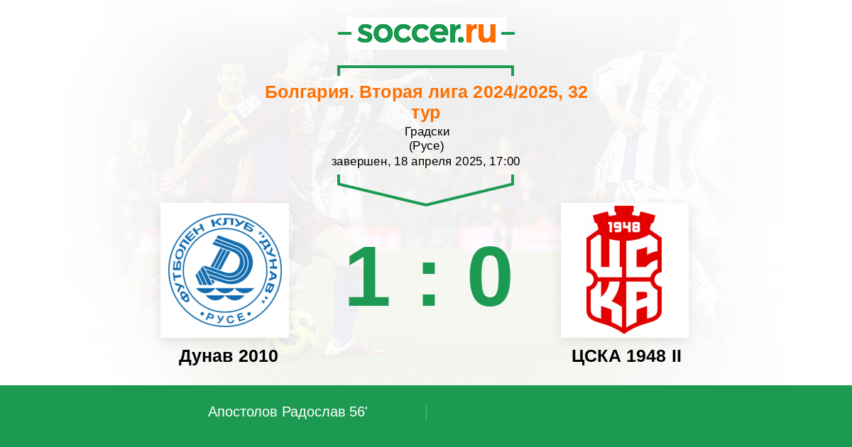 Протокол матча Дунав 2010 против ЦСКА 1948 II