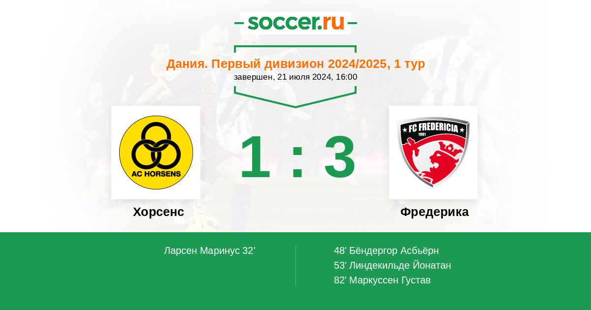 Протокол матча Хорсенс против Фредерика