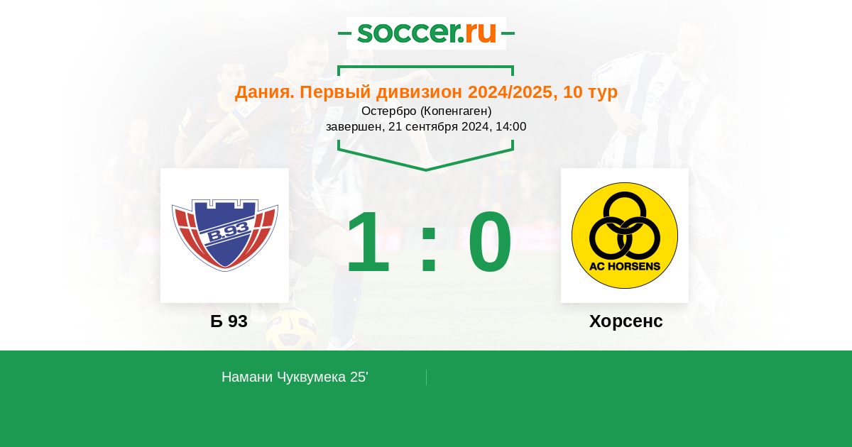 Протокол матча Б 93 против Хорсенс