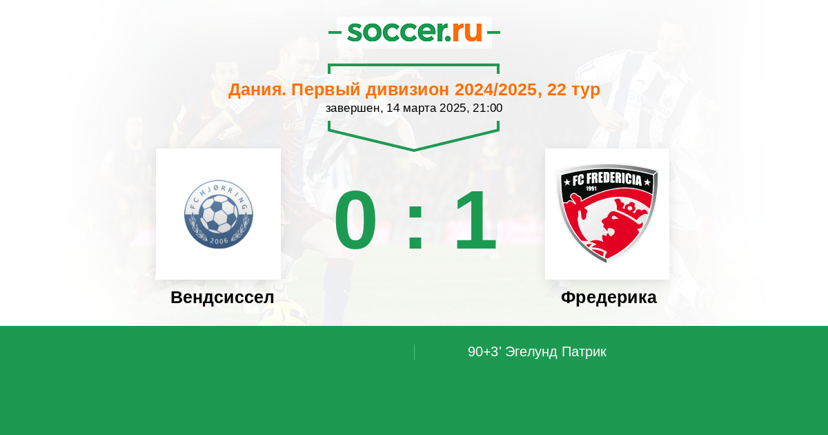 Протокол матча Вендсиссел против Фредерика