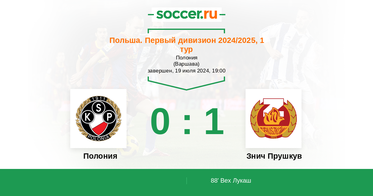 Протокол матча Полония против Знич Прушкув