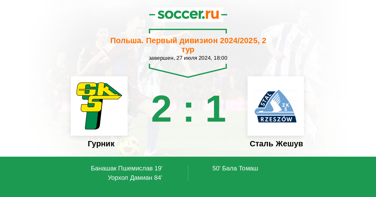 Протокол матча Гурник против Сталь Жешув