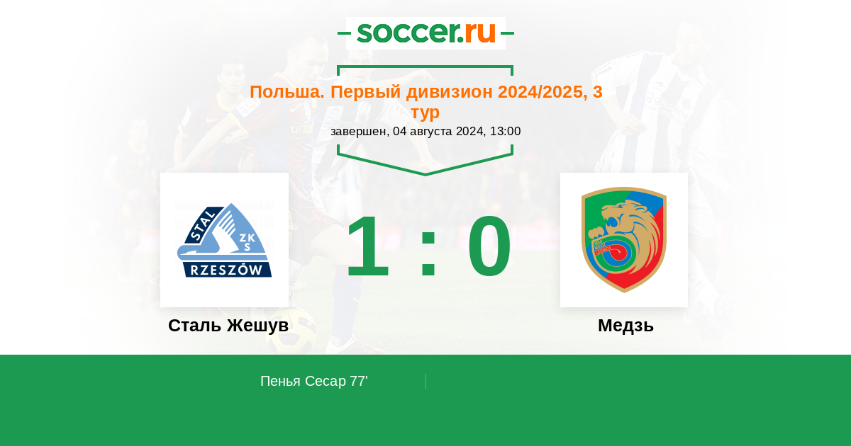 Протокол матча Сталь Жешув против Медзь