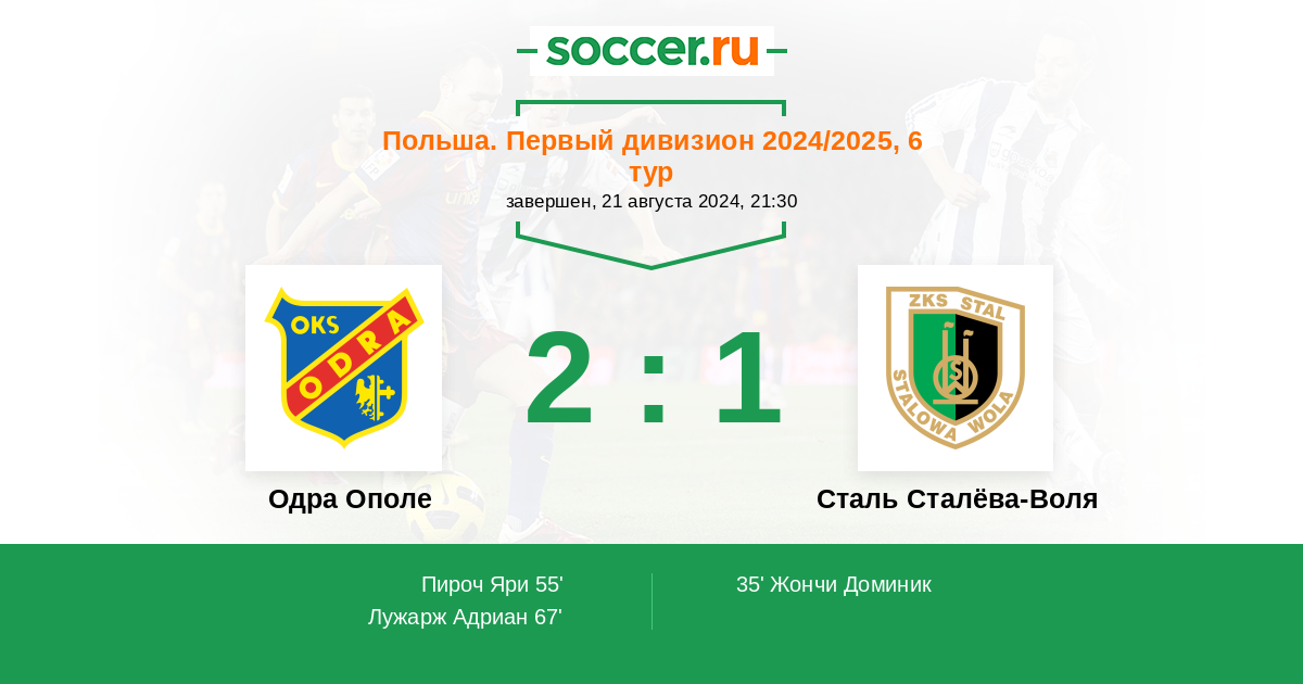 Протокол матча Одра Ополе против Сталь Сталёва-Воля