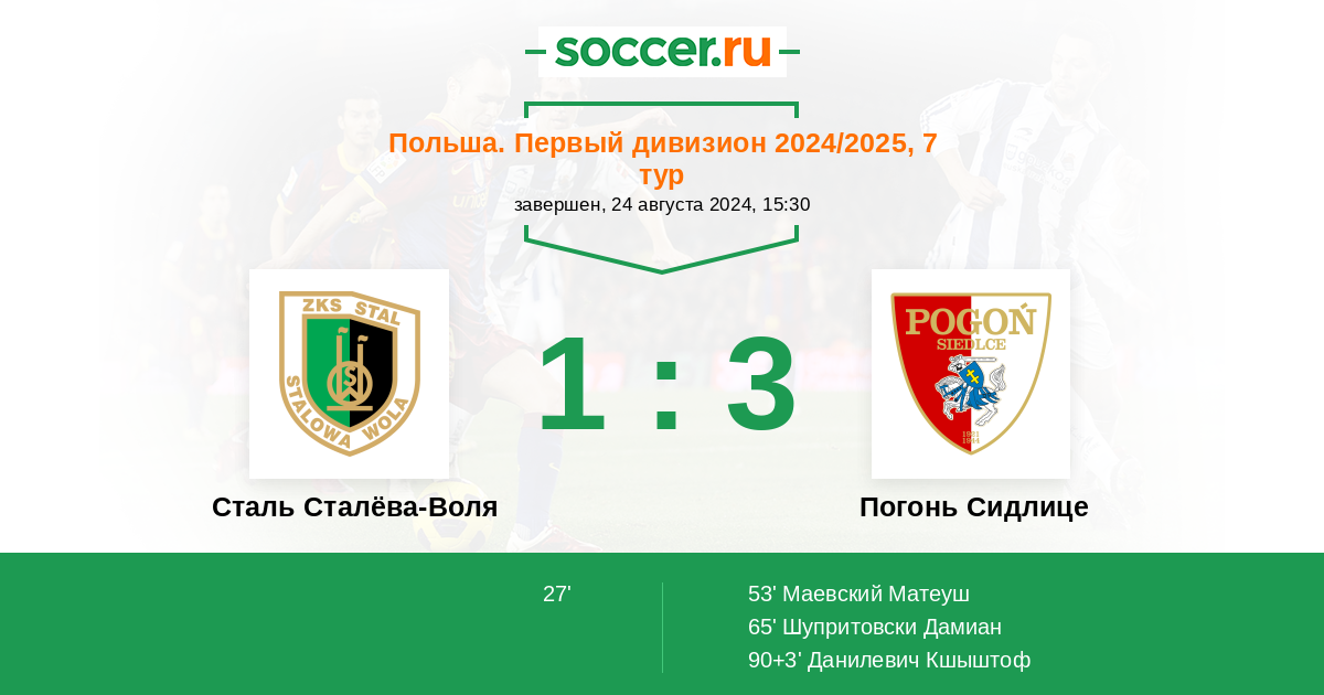 Протокол матча Сталь Сталёва-Воля против Погонь Сидлице