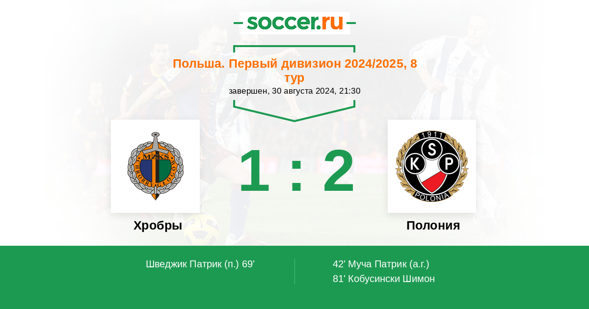 Протокол матча Хробры против Полония